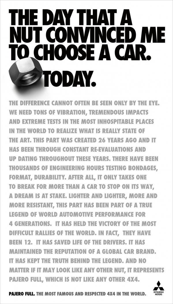 best print ads How a Nut Convinced Me to Choose a Car | Mitsubishi November 25, 2016Web Comments Off on How a Nut Convinced Me to Choose a Car | Mitsubishi Source:https://bestcopyads.wordpress.com/page/9/